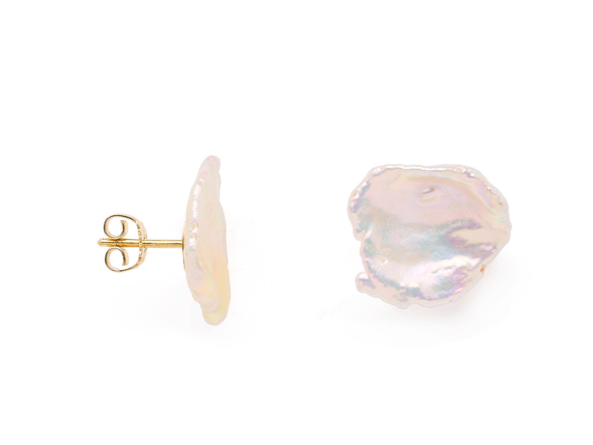 18 krt red gold earrings set with 46 brilliant diamonds and 2 baroque Tahitian pearls