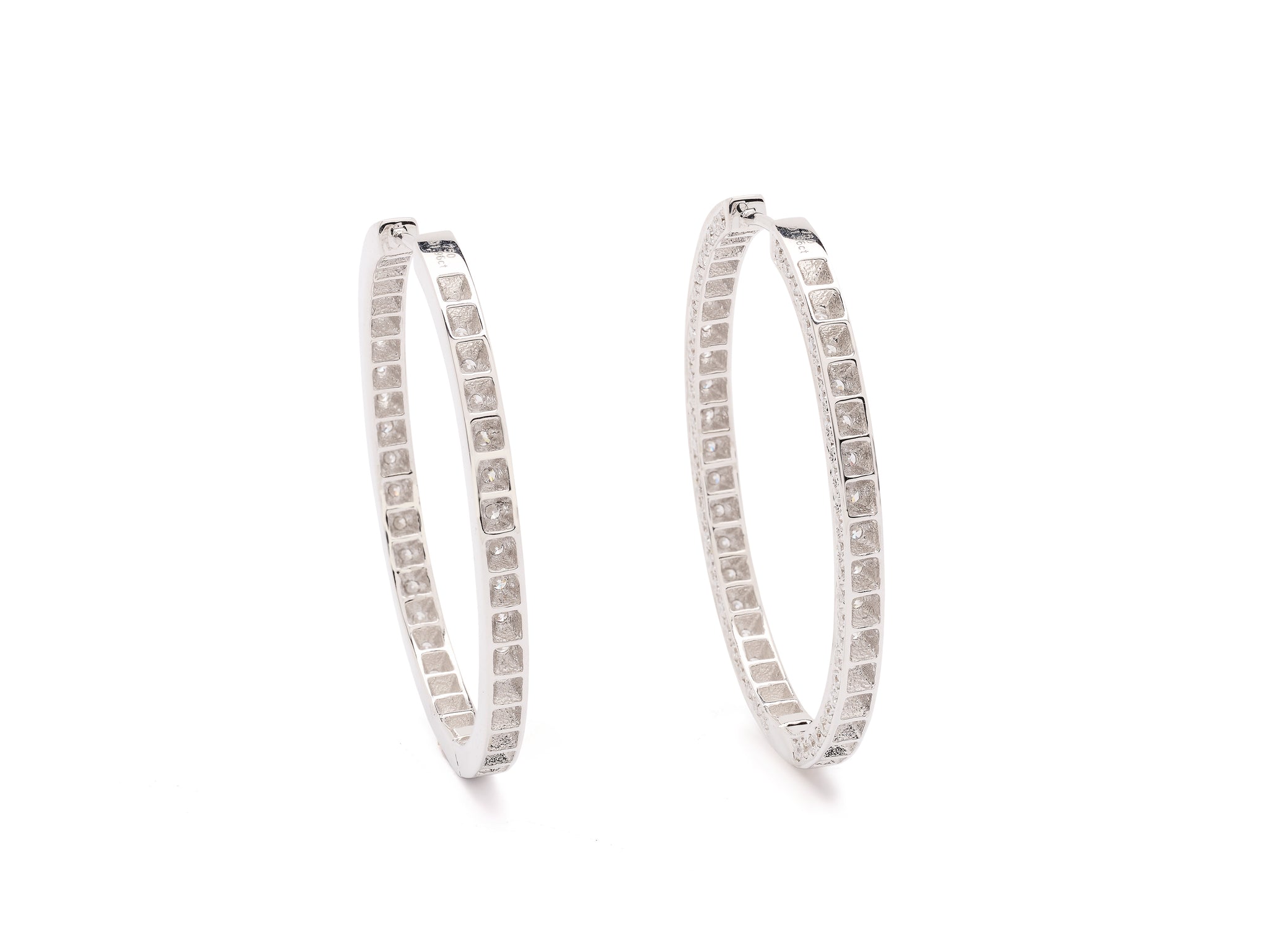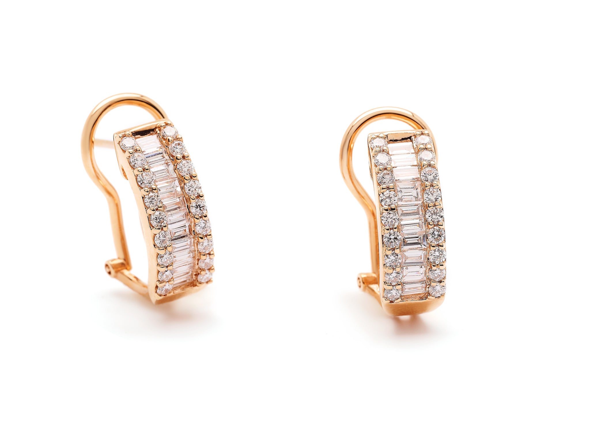 18K red gold earrings set with 22 baguette and 36 brilliant diamonds