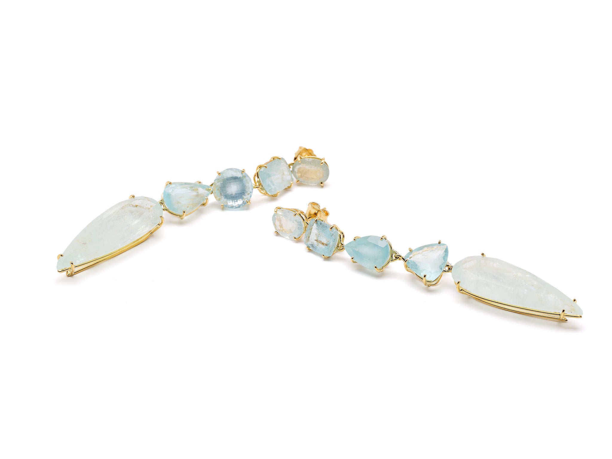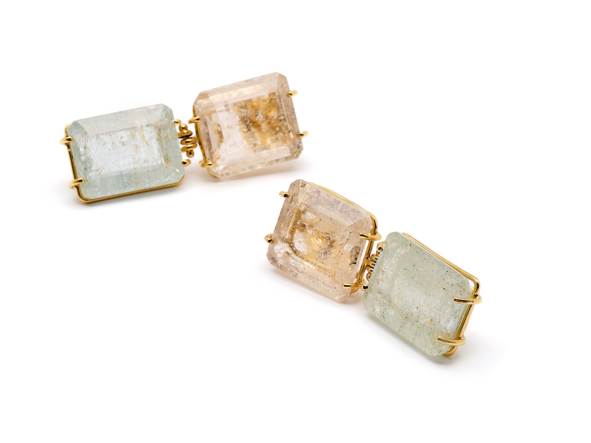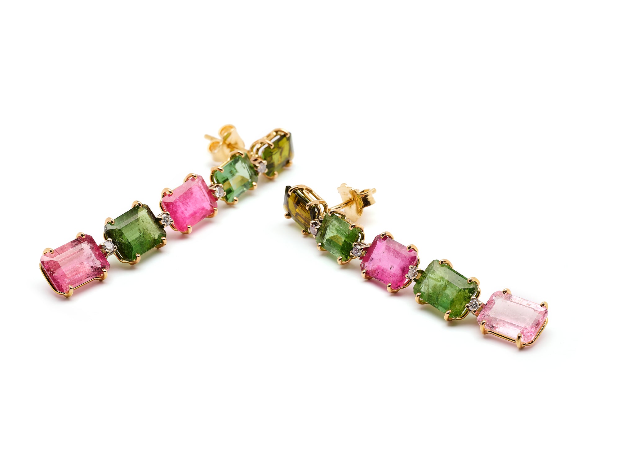 18K yellow gold earrings set with 10 emerald-cut Tourmalines