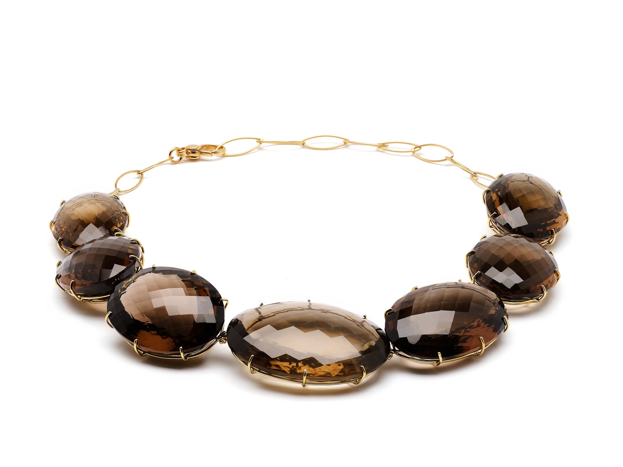 18K yellow gold necklace set with 7 smoky Quartz stones