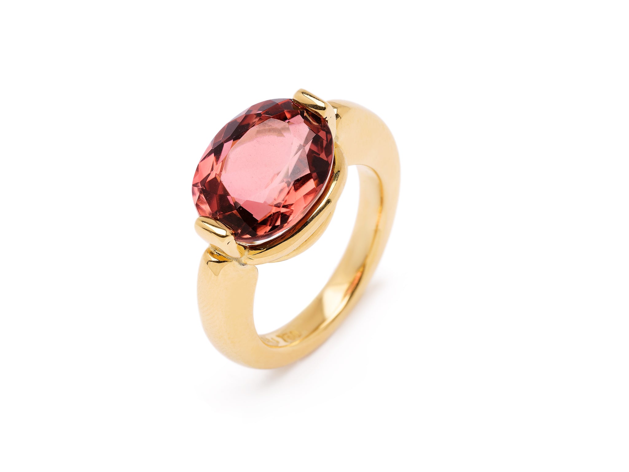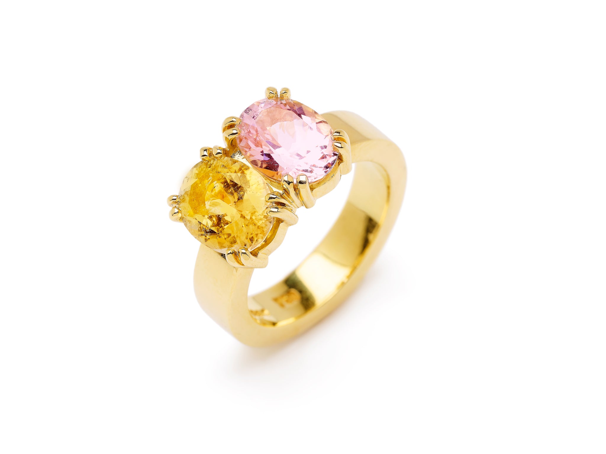 18K Yellow gold ring set with a yellow and soft pink Tourmaline