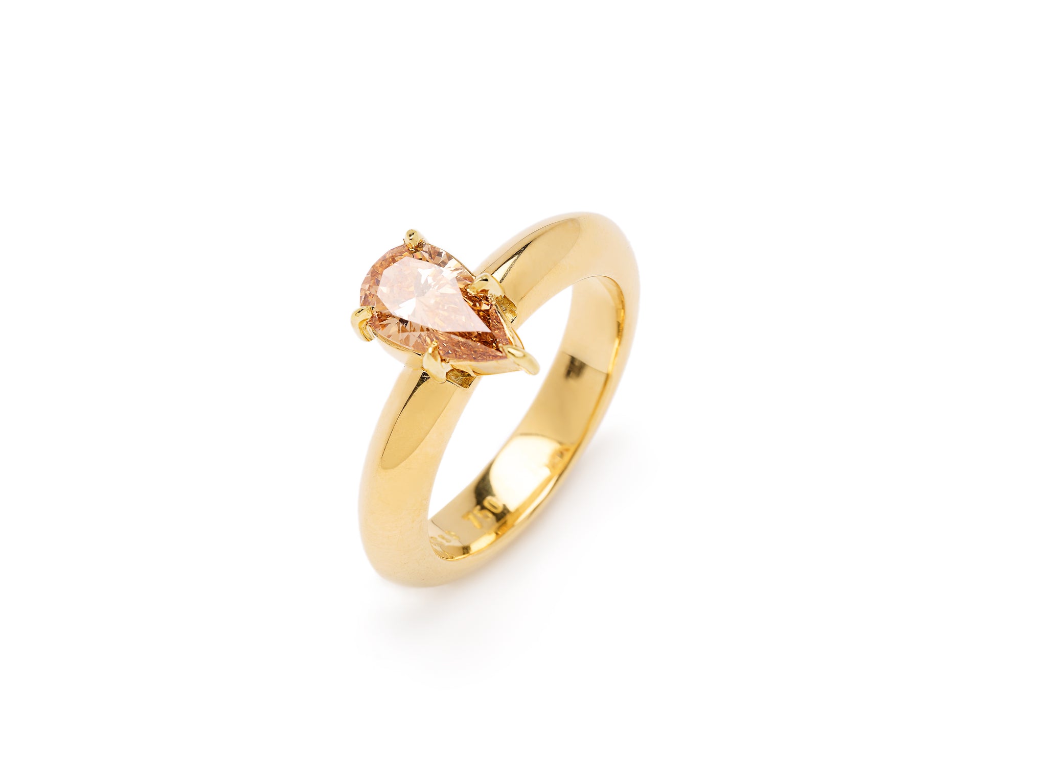 18k yellow gold ring set with lab-grown pear-shaped diamond
