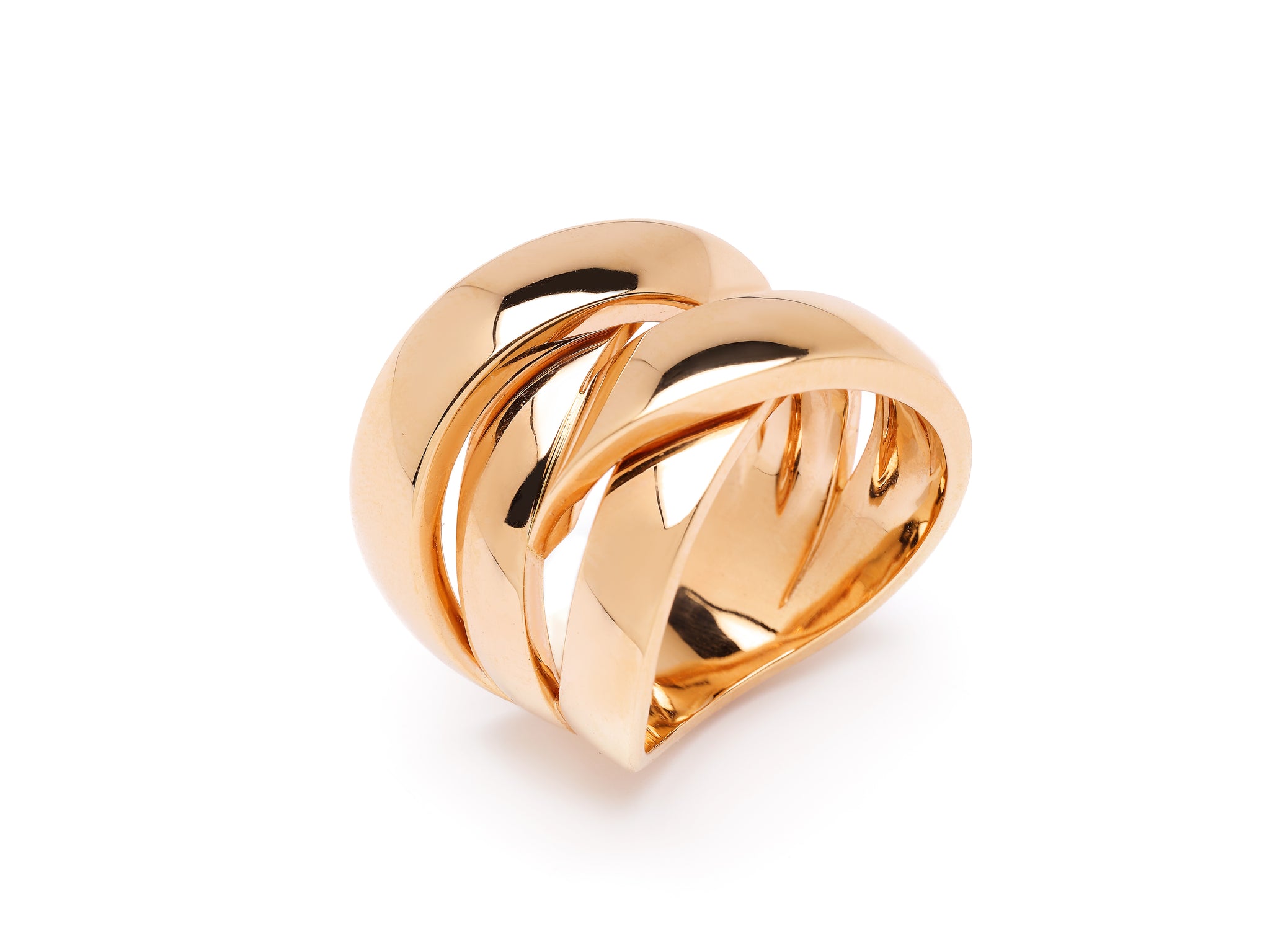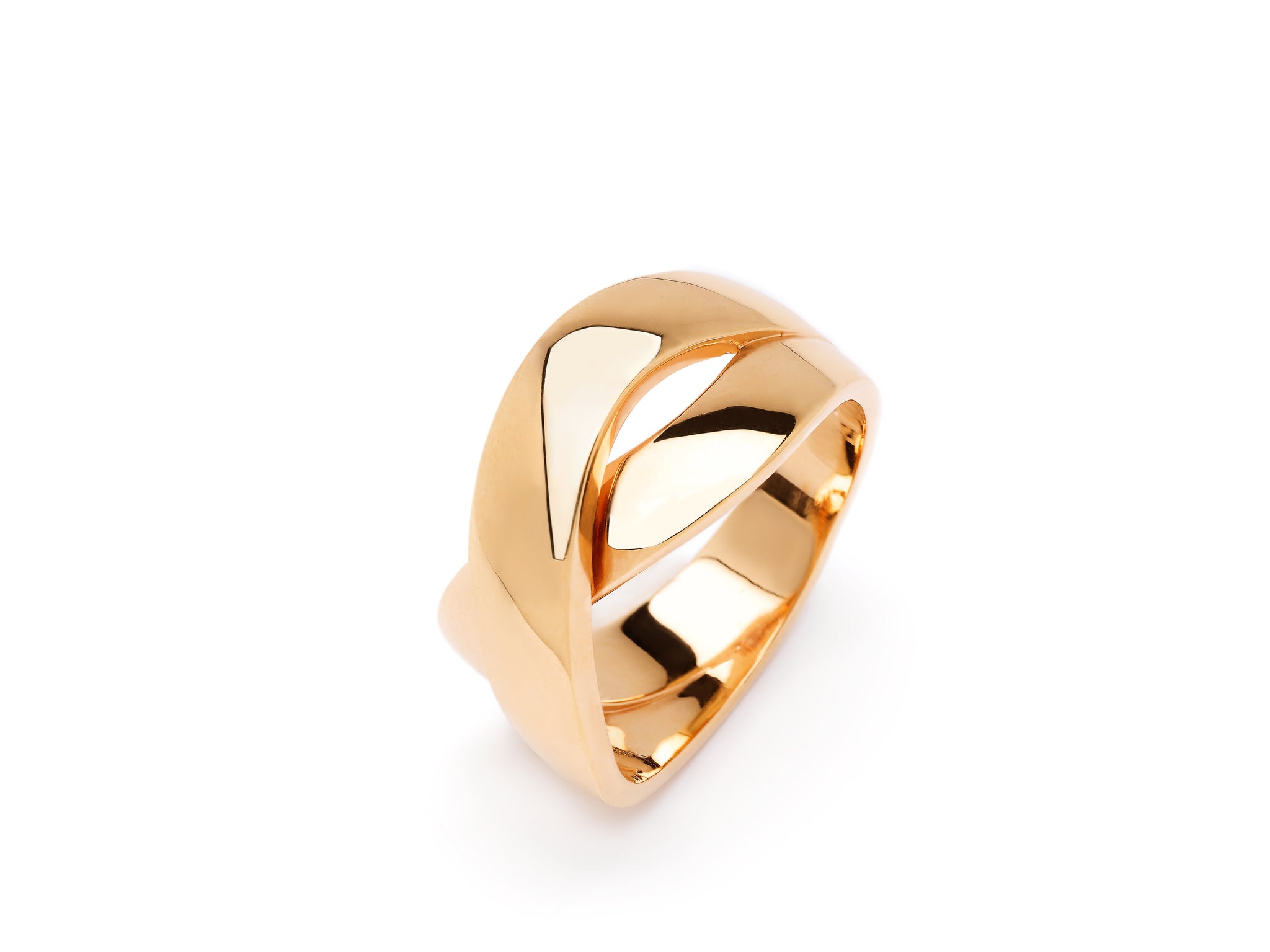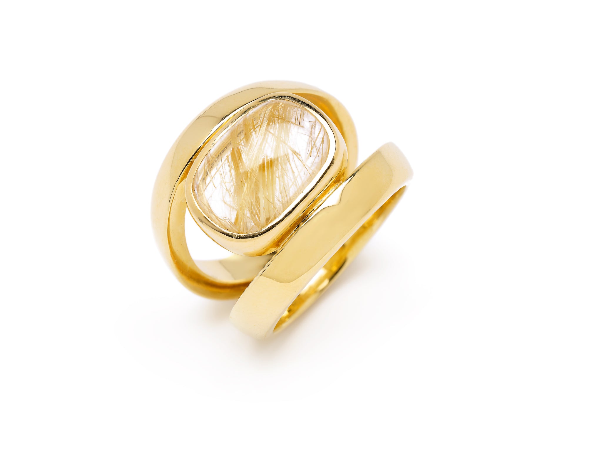 18K Yellow gold double ring set with cabuchon cut rutile quartz